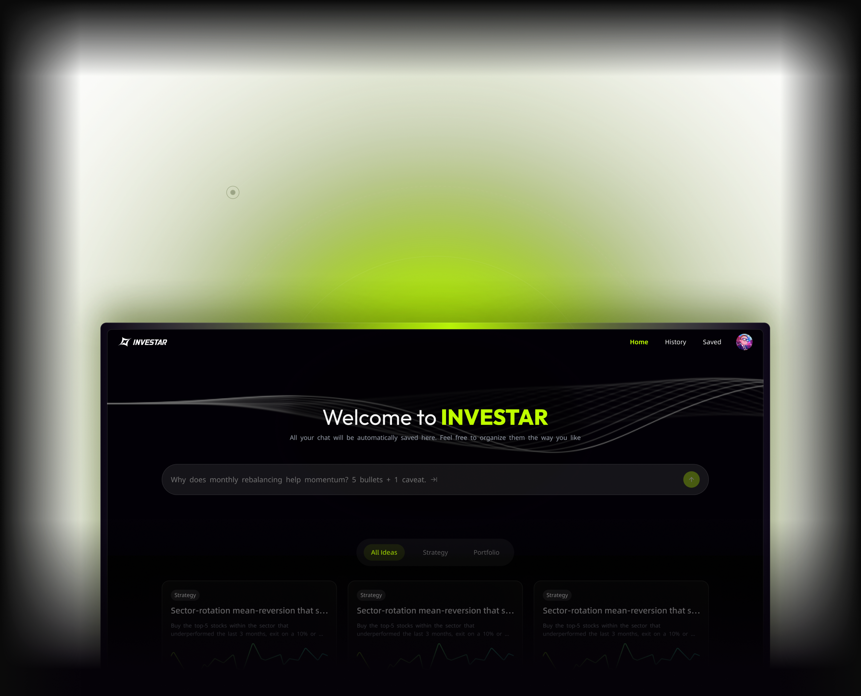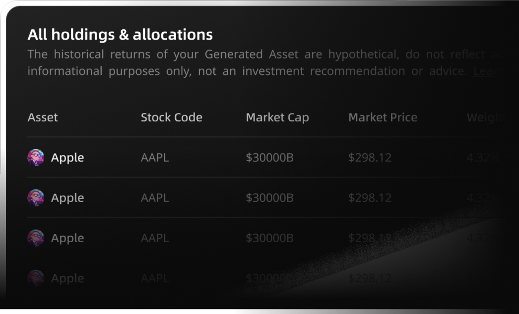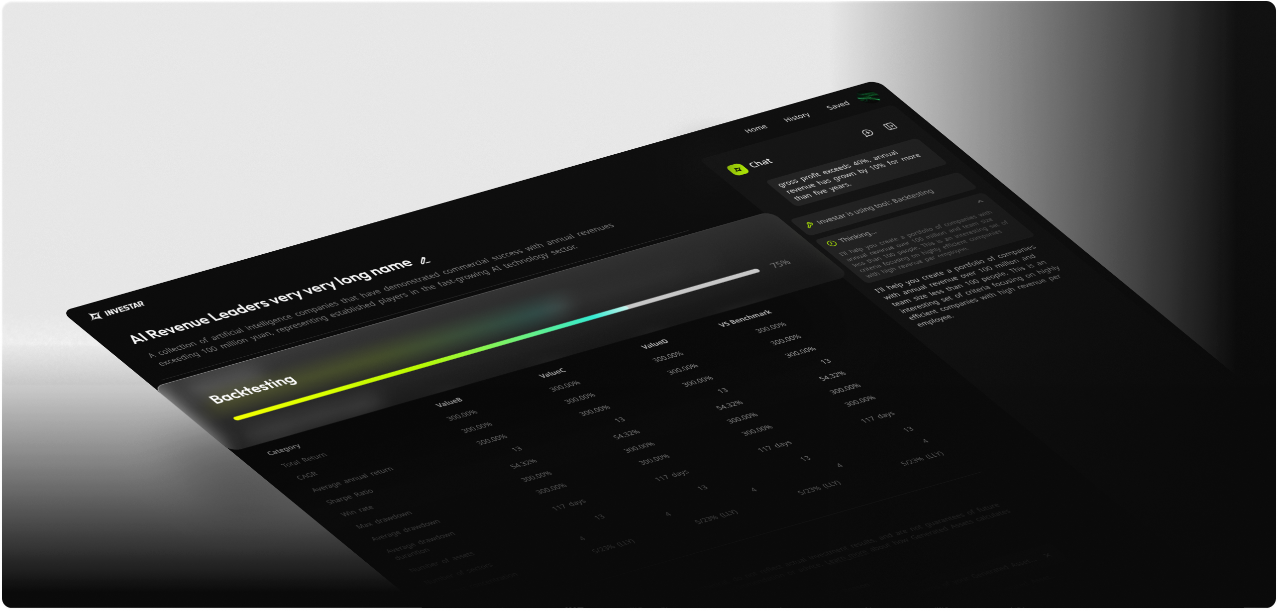 Every strategy and portfolio is automatically backtested and benchmarked against major indices or saved portfolios.